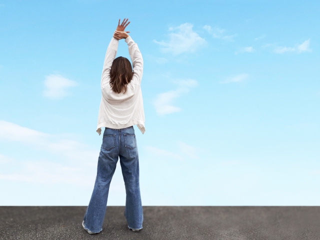 ・腕を上に伸ばす