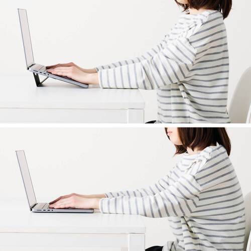 ノートパソコンの場合は、台を使うだけでも負担が軽減します。
