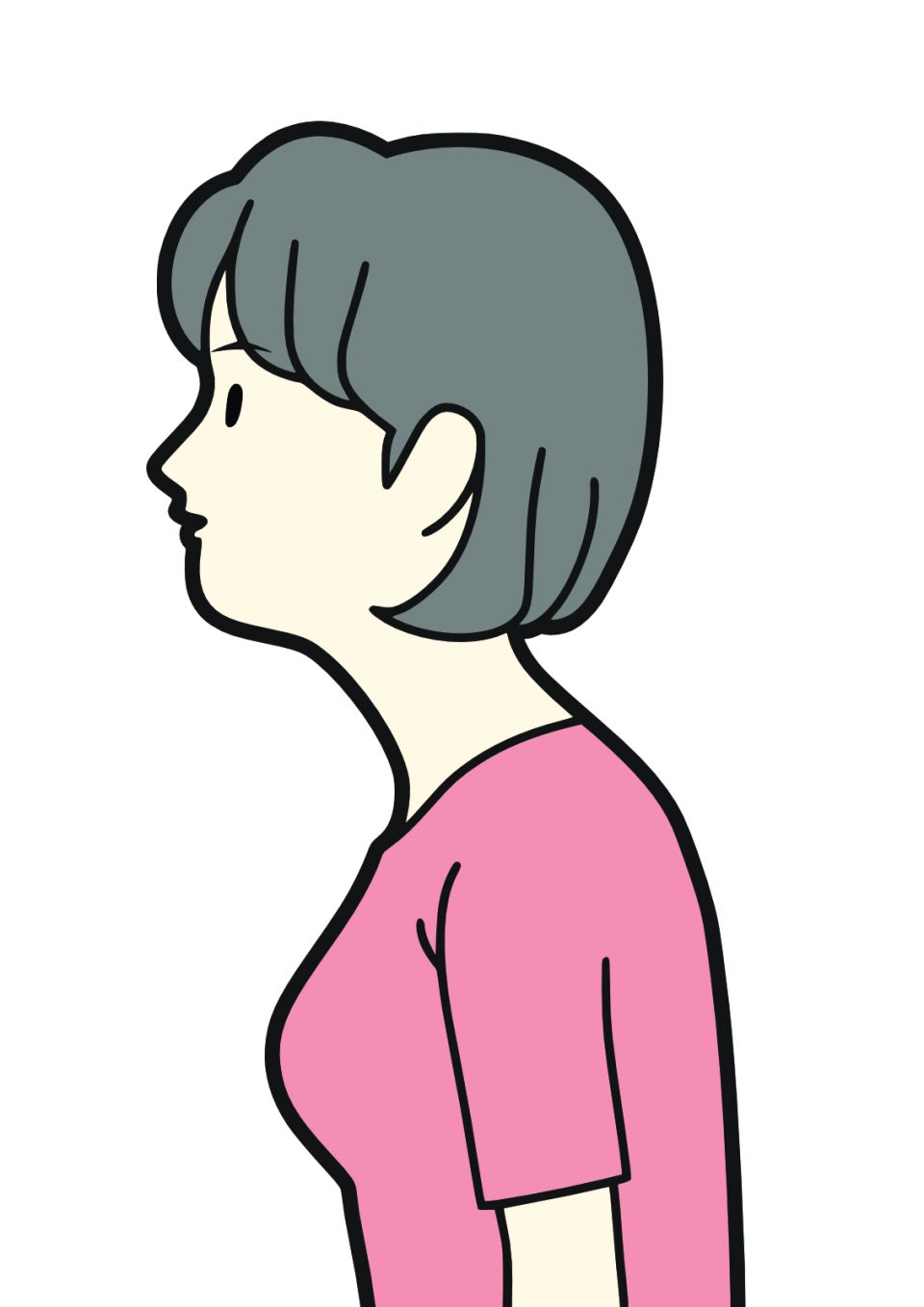 本来、呼吸は横隔膜が中心となって行われますが、姿勢が悪いと首や肩の筋肉(呼吸補助筋)が働きすぎてしまいます。